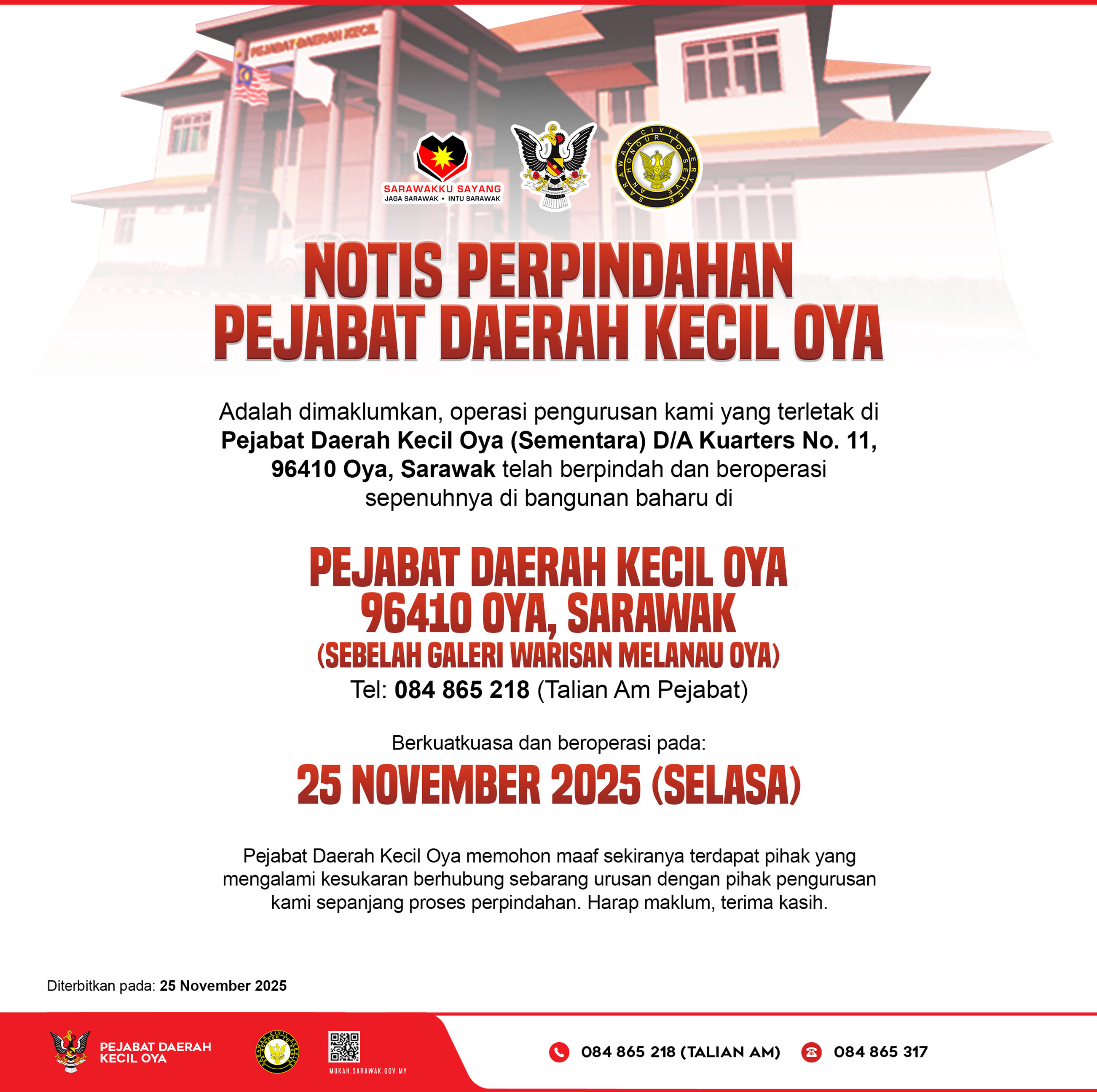 NOTIS PERPINDAHAN PEJABAT DAERAH KECIL OYA