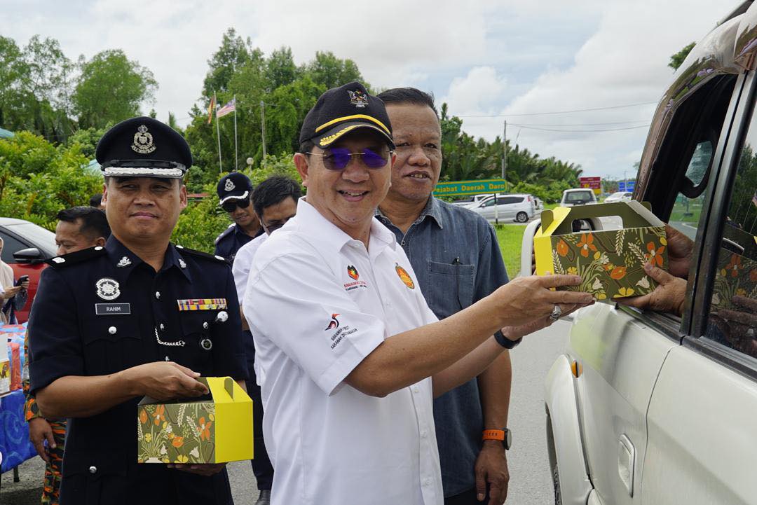 Majlis diteruskan dengan sesi penyerahan goodies bag dan risalah keselamatan jalan raya kepada para pengguna jalan raya yang melalui kawasan jalan utama di hadapan Perkarangan Rumah Kerehatan Kerajaan Sarawak, Daerah Daro. Sesi ini diadakan sebagai simbolik usaha mendekati komuniti dan menyampaikan mesej keselamatan sempena musim perayaan.